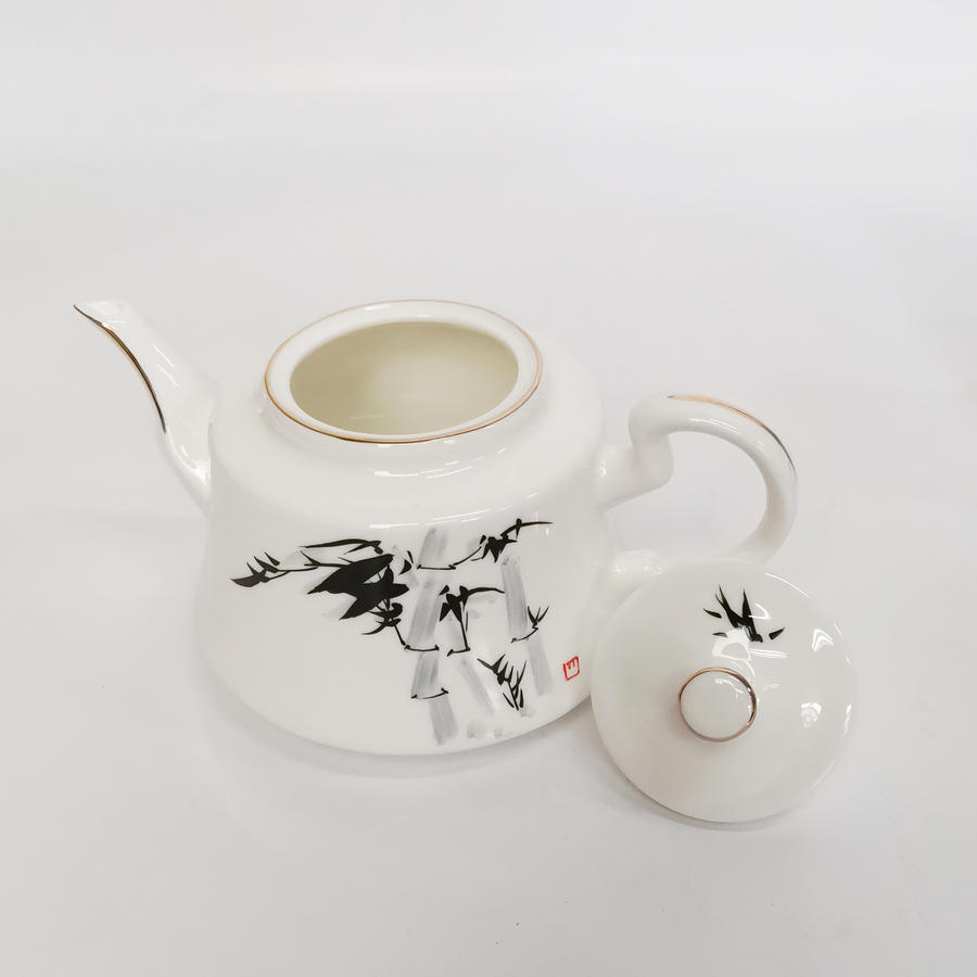 产品介绍:此产品为环保骨瓷茶具,画面以水墨竹子为主,清新淡雅,象征着顽强不屈节节高升人们对美好的事物的向往和追寻。由此当好友一起品茶,论茶之时更为随心所欲,爽心悦目。