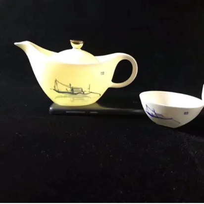 【非遗助残】【唐山骨瓷】手绘骨瓷一帆风顺(元宝)茶具