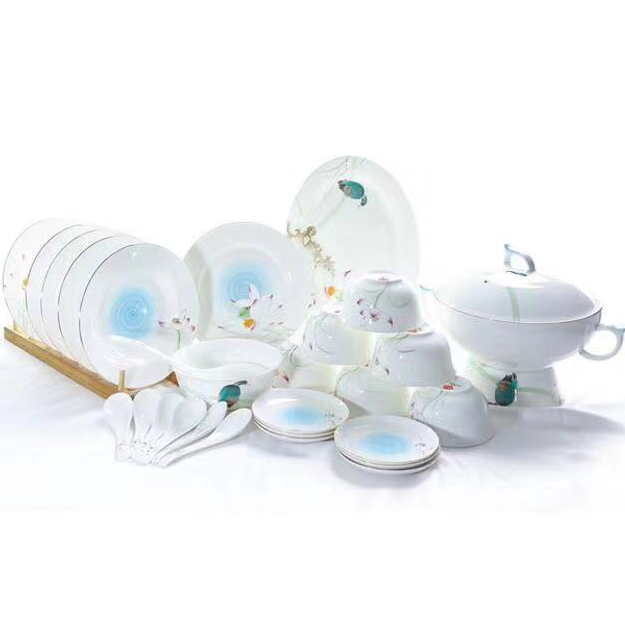【非遗助残】【唐山骨瓷】29头手绘清荷餐具