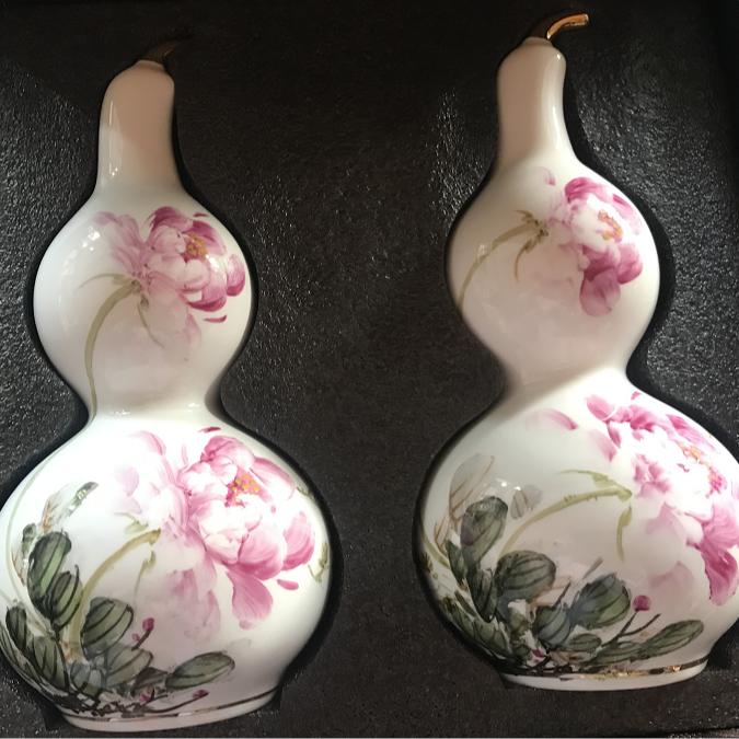 【非遗助残】【唐山骨瓷】手绘牡丹葫芦 葫芦谐音“福禄”吉祥的象征