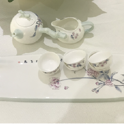 【非遗助残】【唐山骨瓷】手绘长山桃花茶具 精选大型食草类动物骨粉 纯天然绿色环保