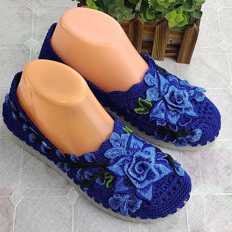 【助残商品】宏霞纯手工 升级版亮丝线(绣花)休闲方口鞋(孺子牛品牌)水晶织女鞋底