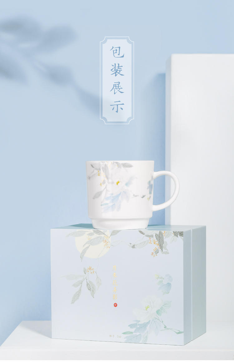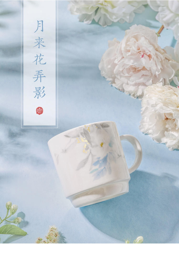 【助残商品】月来花弄影-马克杯水杯国风中式骨瓷杯礼盒