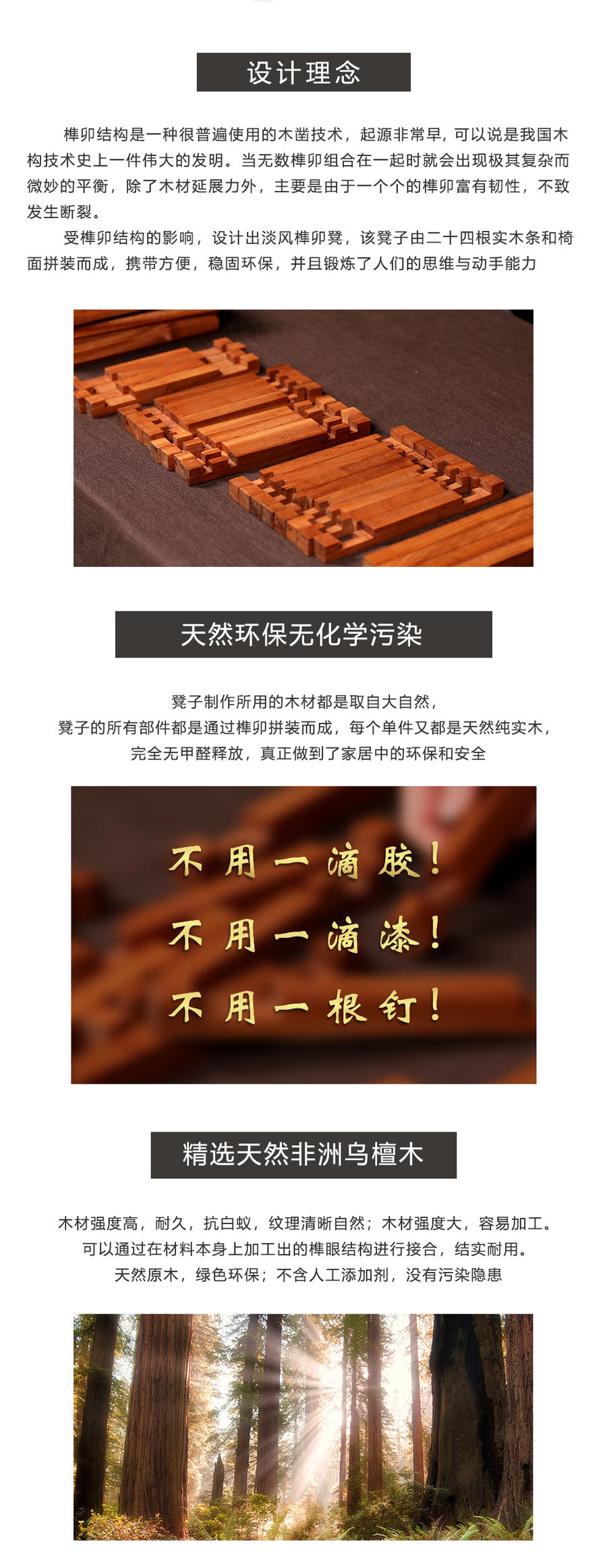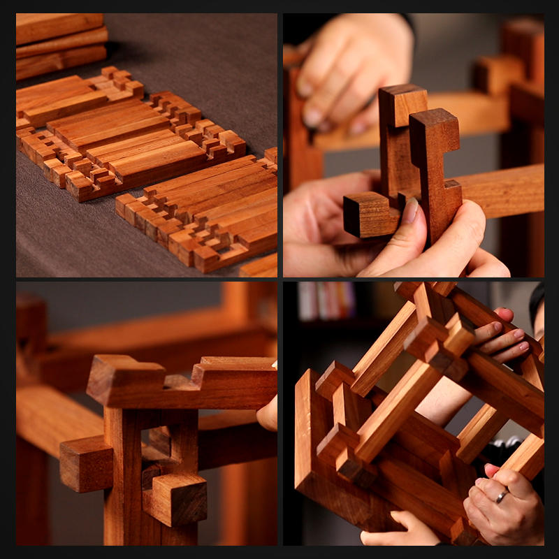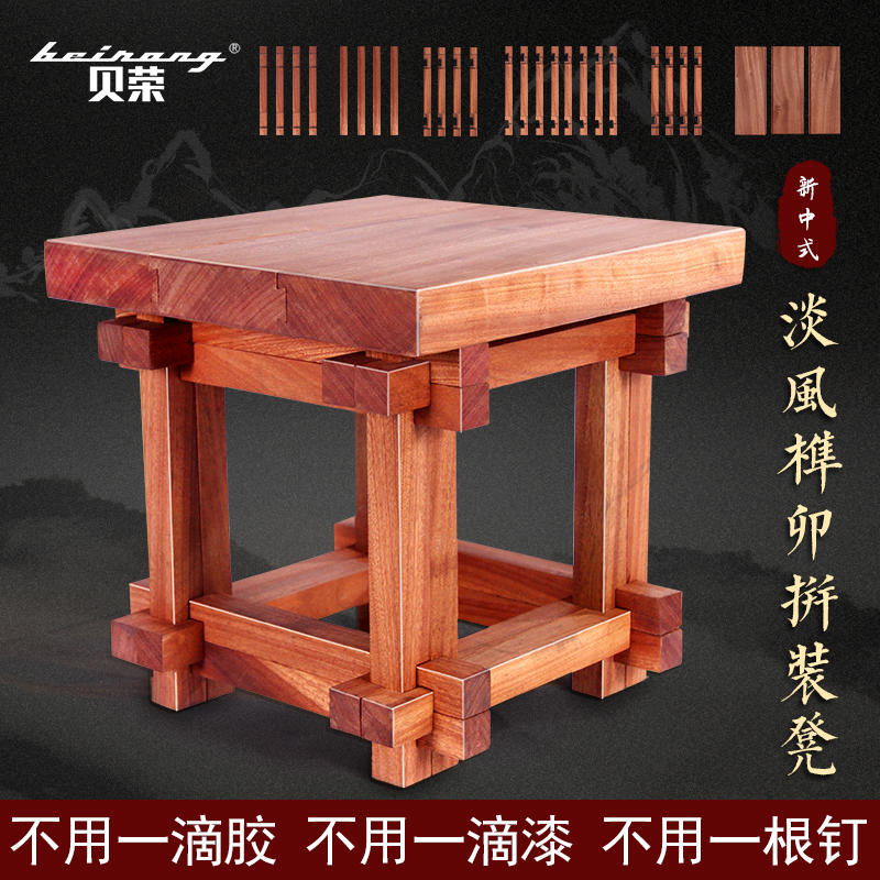 【非遗助残】贝荣 原创 “淡风” 榫卯拼装凳非洲乌檀木实木榫卯鲁班锁孔明锁儿童玩具拼装凳
