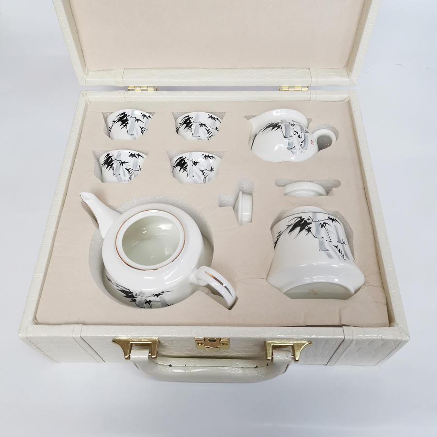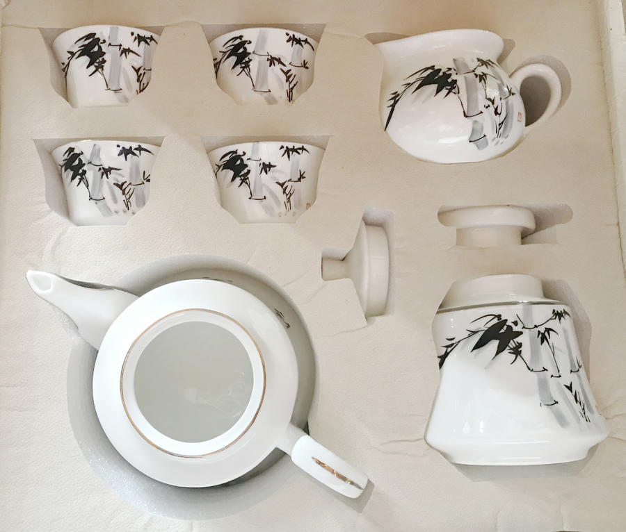 产品介绍:此产品为环保骨瓷茶具,画面以水墨竹子为主,清新淡雅,象征着顽强不屈节节高升人们对美好的事物的向往和追寻。由此当好友一起品茶,论茶之时更为随心所欲,爽心悦目。