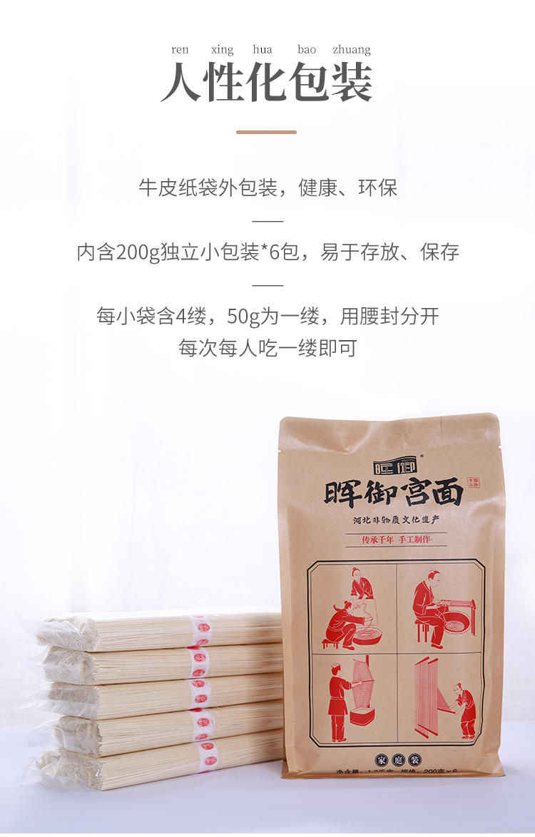 【非遗助残】河北非遗特产 藁城纯手工宫面家庭装 空心挂面 细腻筋道 耐煮不糟 200gx6包 包邮